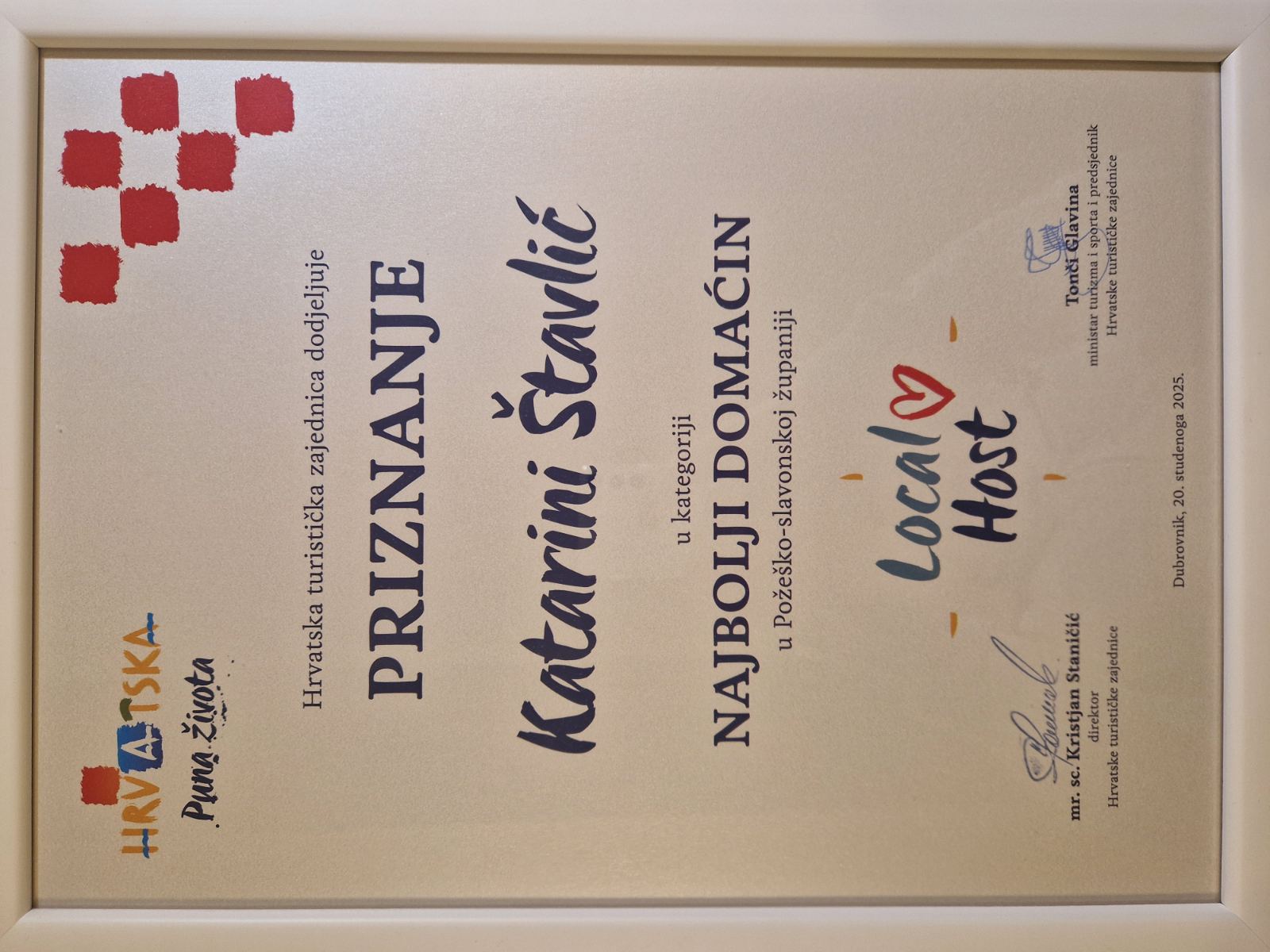 Holiday house AKORD is located 15 km from the Papuk Nature Park with many hiking trails, and in the surrounding area within an hour's drive by car you can visit: Duboka Adrenaline Park (15 km), Jankovac Resort (30 km), Shhhuma Aquapark (14 km), GEOINFO CENTER in Voćin (40 km), The Kutjevo winery almost 800 years old (30 km) and other excellent wineries from the Kutjeva region, Terra Panonica Interpretation Center (19 km), Bećarc Museum (19 km), landscaped walkways on Požeška Gora (6 km), City Library Požega, City Museum of Požega, Diocesan Museum of Požega Diocese, Trg sv. Trojstva, the Cathedral of Saint Teresa of Avila (6 km) and other interesting tourist locations in the Golden Valley. In the immediate vicinity, there are various restaurants and catering establishments, as well as tasting rooms on agricultural farms.